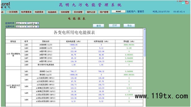 為了實現對本工廠內各回路用電量的監管,系統設計了電能管理報表,系統通過對有功電度的采集,按照回路名稱的不同,自動生成日報表、月報表和年報表并有報表打印功能,并可對某一回路的某一時間段內的用電量進行查詢,可以幫助物業建立有效的用能管理考核制度。通過系統的建設和制度的建立,使各入駐管理人員節能意識大大提高,有效的節約了能源消耗。
