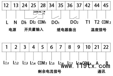 8路剩余電流,2路溫度 |