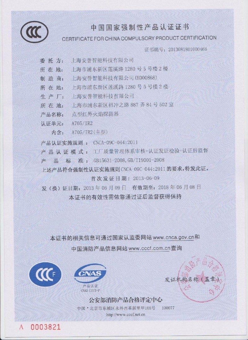 榮譽(yù)資質(zhì) A705IR2--CCCF認(rèn)證