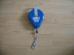 方法是:抓住掛鉤用力猛拉試驗能否鎖緊。如不能鎖緊,要立即與銷售商聯系,派專業人員檢查維修。防墜器必須高掛低用,使用時應懸掛在使用者上方堅固鈍邊的結構物上。使用防墜器前應對安全繩 、外觀做檢查,并試鎖2~3次(試鎖方法:將安全繩以正常速度拉出應發出“嗒”、“嗒”聲;用力猛拉安全繩,應能鎖止。松手時安全繩應能自動回收到器內,如安全繩未能完全回收,只需稍拉出一些安全繩即可)。如有異常即停止使用。