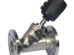 德國KARL-角座閥系列產品【進口角座閥】【進口不銹鋼角座閥】【Y型內螺紋氣動角座閥】【進口內螺紋氣動角座閥】【進口角座閥】【進口法蘭氣動角座閥】【進口全不銹鋼氣動角座閥】【進口不銹鋼焊接氣動角座閥】德國KARL(卡爾)進口氣動角座閥:Y型全不銹鋼氣動角座閥氣動角座閥系列:Y型全不銹鋼氣動角座閥的詳細資料:一、結構特點:流量大、流阻小、無水錘:Y型設計,擴大了閥腔流通截面,使閥腔內流體更加平順,提高30%的流量。超長使用壽命:閥桿采用316L不銹鋼,密封采用契型PTFE,閥桿自動校正、自動潤滑,免維護。二、產品用途:卡爾牌氣動角座閥是本公司最新引進國外先進生產技術,結合現代工業應用研發而成的新一代氣動角座閥。它廣泛應用于食品和化學過程,滅菌機、高壓消毒器、干洗機、干衣機、啤酒生產線等。與傳統角座閥相比,它具有以下新特點:1、可視位置指示:可接限位開關或緊急手動裝置。2、容易安裝:氣控頭可以作360?旋轉,甚至限位開關也可以360?旋轉。可方便地安裝一到二個限位開關。3、先進的氣動控制器:加厚工程塑料外殼,安全可靠。低磨損的活塞結構,容量大而低耗氣量。內部元件自潤滑,免維護。4、具有多種控制方式:常開、常閉、雙動。5、要求更小的氣動執行器:流體從閥桿上方流入時,制頭。6、容易連接:MAMUR標準連接,嵌入式金屬接頭。可選更小的控制頭。7、長壽命導桿:閥桿契形特氟隆(PTEE)密封,避免臟物導入。自潤滑,免維護。閥桿經特別處理以確保最佳固定,并能自動校正位置。8、無水錘作用:流體從閥桿下方流入時,水錘(水沖擊力)被吸收。9、先進的閥體機構:流量比普通角座大30%,體積更小,流體流態更優。不銹鋼316閥體,特氟隆密封,耐高溫,耐腐蝕。單作用角座閥具有結構簡單、造型美觀、裝拆快捷,開關迅速,操作靈活,流體阻力小,使用安全可靠等優點。全部鋼件采用耐酸不銹鋼材料,密封件采用食品硅橡膠或聚四氟乙烯材料,符合食品衛生規