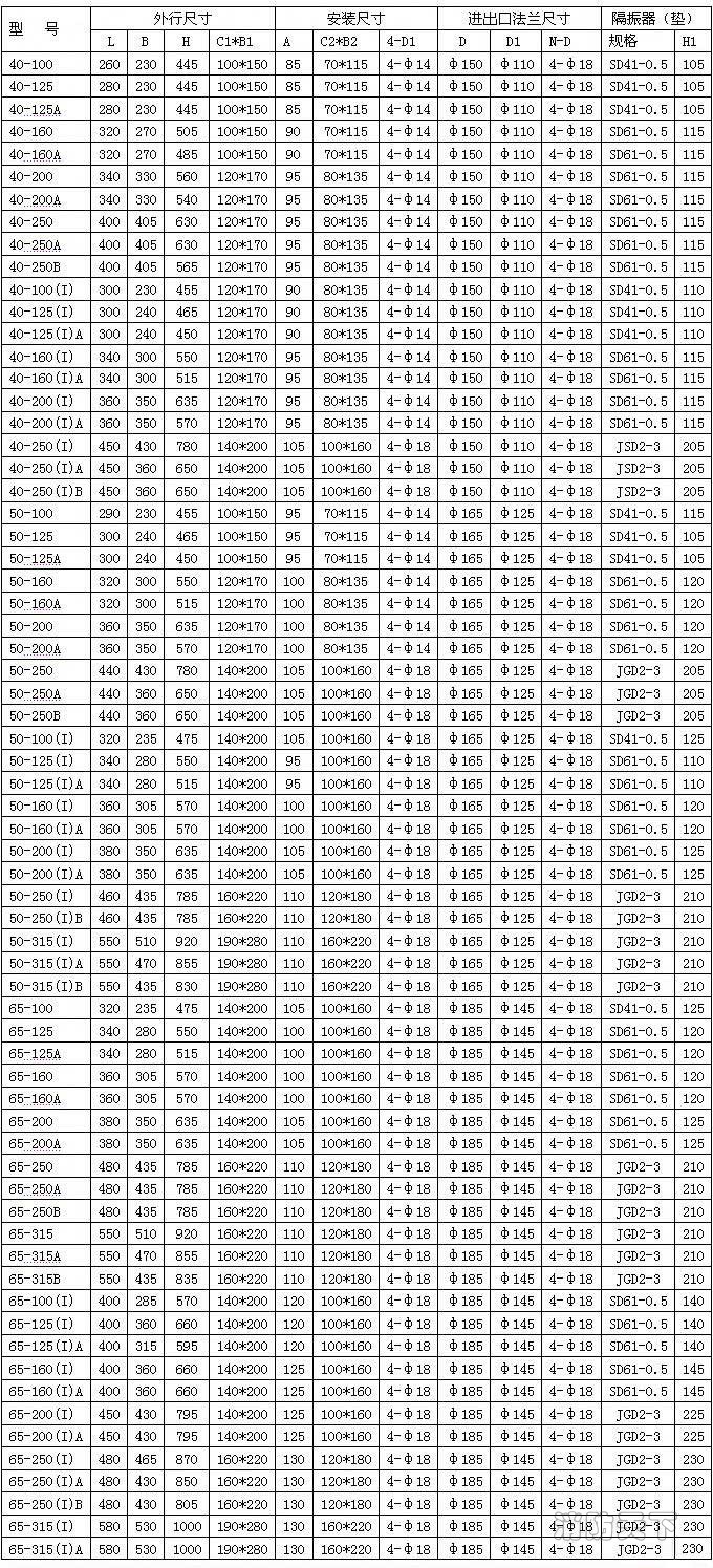 吸入壓力≤1.0MPa,或泵系統(tǒng)最高工作壓力≤1.6MPa,即泵吸入口壓力+泵揚程≤1.6MPa,泵靜壓試驗壓力為2.5MPa,訂貨時請注明系統(tǒng)工作壓力。泵系統(tǒng)工作壓力大于1.6MPa時應(yīng)在訂貨時另行提出,以便在制造時管道離心泵的過流部分和聯(lián)接部分采用鑄鋼材料。