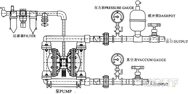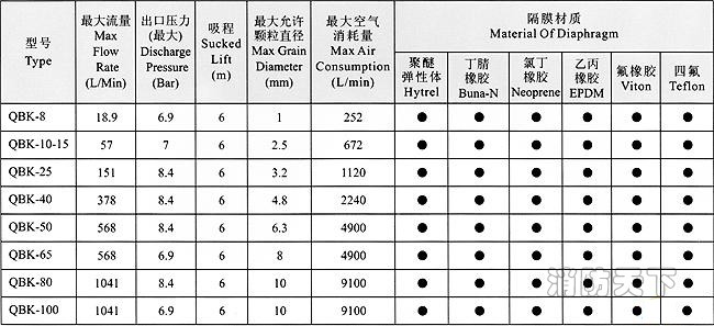 注:在使用QBK氣動(dòng)隔膜泵是,要安裝空氣過(guò)濾器,以濾去壓縮空氣中的水分,并在泵的出口安裝壓力表,避免壓力過(guò)高損害泵,在泵不工作時(shí)應(yīng)及時(shí)清洗泵,避免因凝固損壞泵。