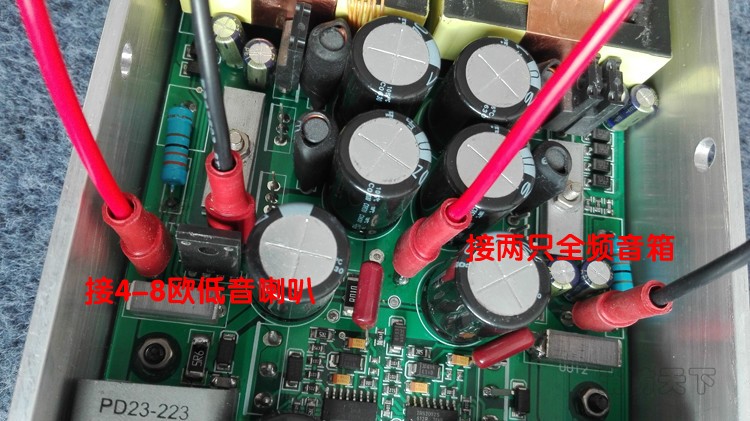 2、將數字功放模塊固定在音箱內部合適位置,模塊需要喇叭氣流散熱,所以模塊要和喇叭處于同一腔體中,模塊不能覆蓋吸音棉,密閉型箱體不適用;