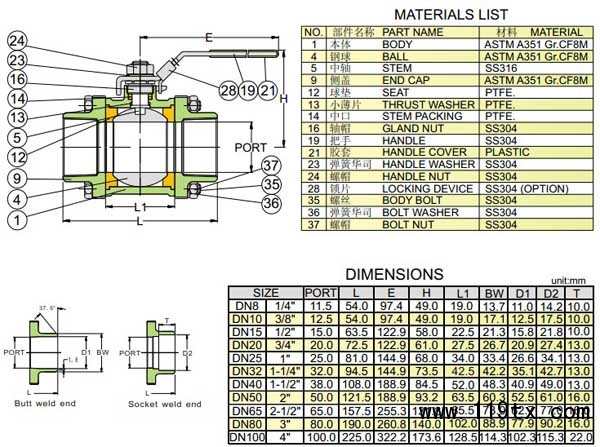 2、公稱直徑: 1/4" to 4" (DN8 to DN100)