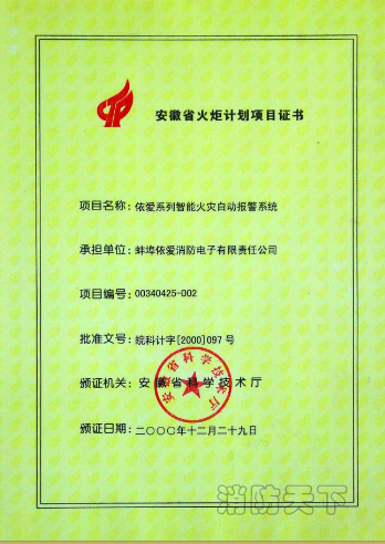 » 安徽省火炬計劃項目證書