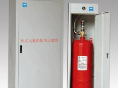 柜式滅火裝置也稱為無管網滅火系統、預制滅火系統,由滅火劑儲瓶、容器閥、驅動器、高壓軟管、壓力信號器、噴嘴、柜體等組成,不需安裝滅火劑輸送管道,不需設置專用的儲瓶間。裝置設置在防護區內,當火災發生時,直接向防護區噴射滅火劑,滅火劑無管路損失,滅火速度更快、效率更高。裝置具有自動、手動和機械應急操作三種啟動方式。