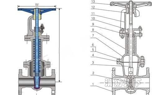 進(jìn)口波紋管密封閘閥結(jié)構(gòu)圖