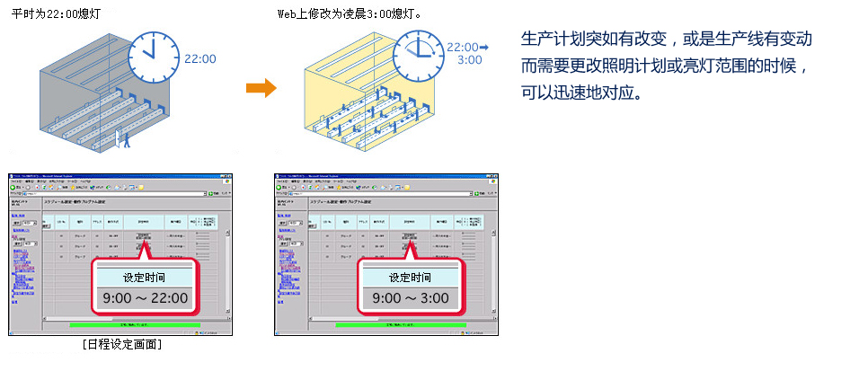 在Web畫面上簡易地進行照明的監(jiān)控與設(shè)定。 |