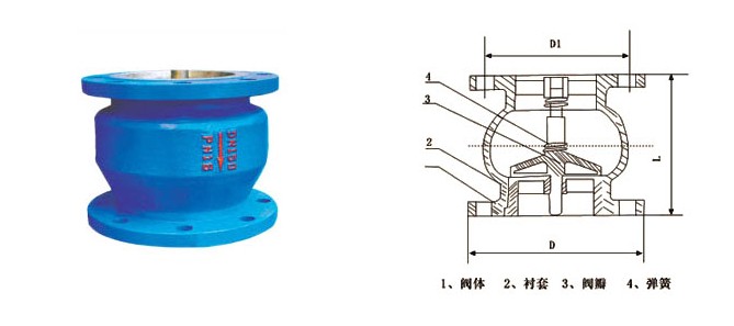 HC41X消聲止回閥有法蘭連接和對夾連接兩種連接方式,閥瓣采用進出口兩端中心軸導向,啟閉靈活,定位準確,可水平安裝或垂直安裝,閥瓣采用彈簧加載,其快速的關閉能有效地減少水錘壓力。密封面采用O形圈彈性密封與金屬硬密封的組合密封結構,密封性能好,關閉時無噪聲。還具有體積小、重量輕、流體阻力小、結構長度小、耐疲勞、壽命長等特點。該閥門安裝于給排水、消防、暖通系統可安裝于水泵出口處,防止回水倒流,而對泵造成損壞。HC41X消聲止回閥主要零件材料: