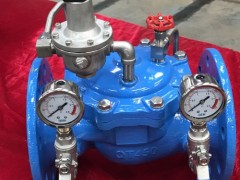 200X減壓閥由主閥2-導閥5-球閥3與壓力表4等組成。減壓閥主要控制主閥的固定出口壓力,主閥出口壓力不因進口壓力變化而改變,并不因主閥出口流量的變化而改變其出口壓力。適用于工業給水、消防供水及生活用水管網系統。