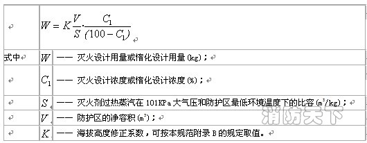 4.1防護區滅火設計用量或惰化設計用量,應按下式計算:
