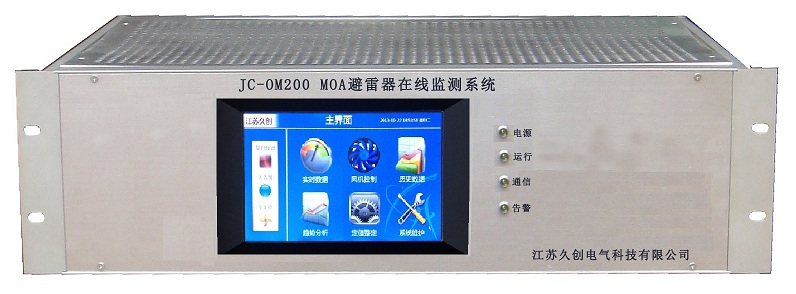 JC-OM200/IED避雷器在線監(jiān)測主IED用于現(xiàn)場的數(shù)據(jù)采集、記錄,對采集到的數(shù)據(jù)進行分析、擬合處理。采用彩色液晶顯示,字跡清晰,顯示現(xiàn)場各組避雷器的實時數(shù)據(jù),內(nèi)容包括全電流、阻性電流、容性電流、母線電壓、雷擊次數(shù)、雷擊時刻等,可預設門限輸出報警,通過RS485(或TCP/IP)與后臺進行數(shù)據(jù)通信。
