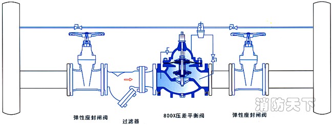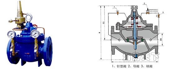 常開型旁通壓差控制閥用于高度差較大且熱源在高區的集中供熱系統,使用時按高度差設定該閥的壓差,并在低區回水管適當位置安裝減壓泵、止回閥,調節閥組成的回水減壓裝置,通過調節閥來調節并設定回水管壓力,這樣既可保證高區用戶不會出現倒空現象,又可保護低區設備不會因壓力過高而損壞。