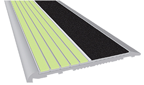 相當于傳統的防滑條,夜光防滑條不僅具有防滑功能還具有若發光功能,在白天自然光以及各種弱光源的照射下,防滑條的夜光層在黑暗的時候會發出黃綠色以及藍綠色的光。這樣人在上樓的時候能清楚的看見臺階位置。起到很好的導向作用。目前我司生產的防滑條以鋁合金或者不銹鋼材質為主。夜光層鑲嵌在防滑條凹槽中。也可以根據客戶的需求制作不同的規格大小的防滑條。