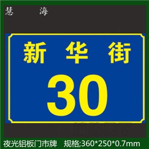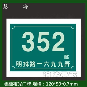 杭州慧?;び邢薰旧a的自發光地名標志是一種表面附涂有發光材料的新型標志,是我國民政局,公安部門極力推薦使用的地名標志產品。近十年時間該產品在地名規劃中的應用日益普及,很多小區的門牌和單元樓也在使用我們的產品,我們的門牌也有夜光和非夜光的。產品獲得廣大民眾的好評。因為我們自己是生產廠家,價格也比較優惠。我們的夜光地名標志超過國家標準“GB17733.1-1999地名標牌”的初始亮度1倍多,10小時后的1.8-2.4倍,我們公司的產品目前國內外也是有專利的。