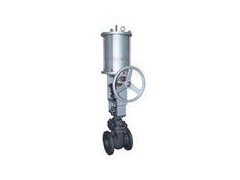 4、氣缸蓋上部裝有氣動-手動轉換裝置。將轉換手柄順時針方向提轉到“氣動”定位孔定位,閘閥處于氣動操作狀態;反之,將轉換手柄逆時針方向提轉到“手動”定于孔處定位,閘閥即可進行手動操作。帶錐齒輪的手柄轉換方向相反。 手動操作閘閥時,手輪旋向和普通手動閥一樣,即順時針轉為關,逆時針轉為開。帶錐齒輪轉動的相反。