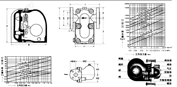 杠桿浮球式蒸汽疏水閥結構尺寸圖及排水圖