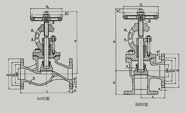 PN1.0、1.6、2.5MPa的A型、B型基本尺寸 Dimensions