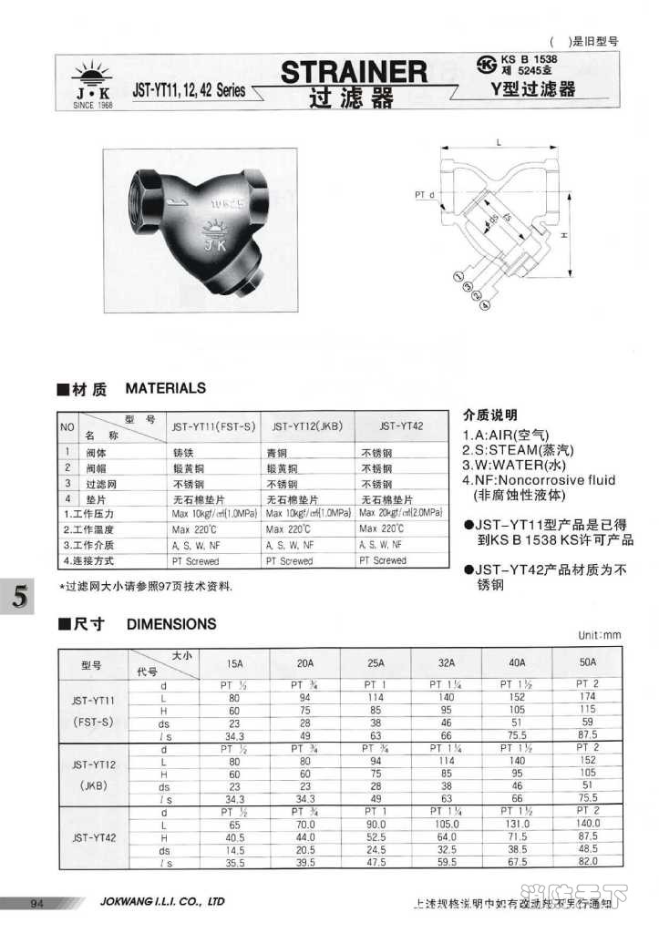 韓國朝光JST-YT42過濾器
