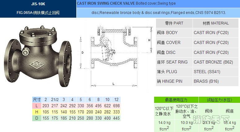 正品臺(tái)灣東光FIG.065A止回閥,JIS10K鑄鐵止回閥 升降式止回閥