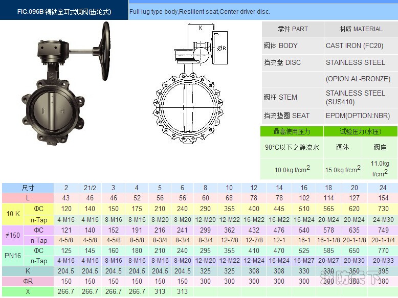 臺灣東光FIG.096B鑄鐵對夾渦輪蝶閥 走水對夾蝶閥 齒輪式鑄鐵蝶閥