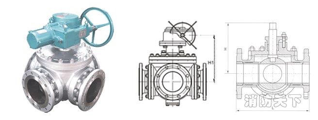 電動四通密封球閥性能參數(shù)與主要尺寸: