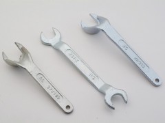 專用開口扳手表面鍍鉻體積小,重量輕,使用攜帶方便,對玻 璃球?yàn)⑺畤婎^安裝時(shí)起保護(hù)作用。經(jīng)改進(jìn),多次使用不會變形
