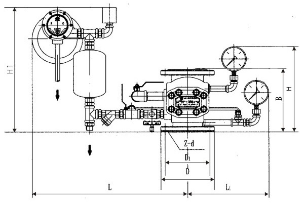 | 型號規格 | DN | D | D1 | Z-d | HI | H | LI | L | B |