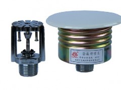 該產品南玻璃球噴頭(1)、螺套座(2)、外罩座(3)、外罩蓋(5)組成。噴頭和螺套座一起安裝在管網的管路上,冉安裝外罩。外罩座和外罩蓋由易熔合金焊接成一體。當火災發生時,環境溫度升高,達到易熔合金的熔點時,外罩蓋自動脫落,隨著溫度的繼續升高,罩內的噴頭玻璃球因為溫度敏感液體膨脹而破碎,從而開啟噴頭自動噴水。