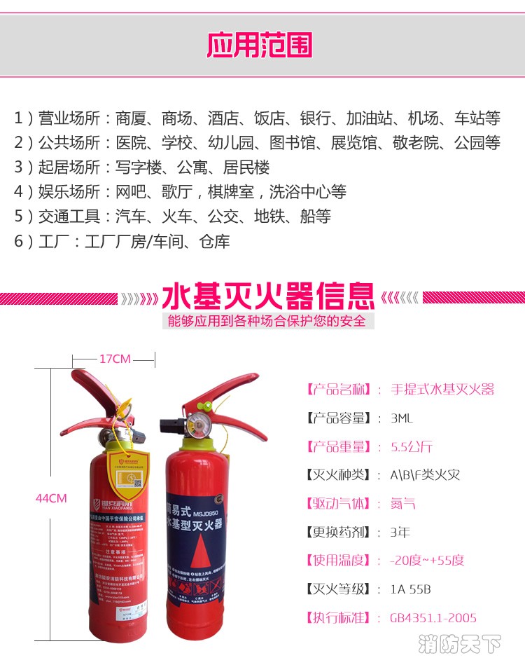 (3)瓶體為鋼制,堅固牢靠,滅火器為常壓狀態(tài),無泄漏、無揮發(fā)??稍?ge;-18℃溫度下使用;滅火劑無毒,無污染。