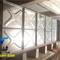 五屹鍍鋅水箱的制作材質:它采用Q235鋼板,沖壓形成1000×1000和1000×500的標準塊,周邊鉆孔,經鍍鋅處理,現場進行組裝,組裝時標準塊之間硅膠密封,螺栓連接了。鍍鋅水箱的設計:該水箱的進水管、出水管及溢流管的管徑、位置由設計決定;水箱四周應有不少于600mm通道,箱底不少于500mm,箱頂不少于800mm。安裝時箱底四周及箱底標準快之間的連接縫隙要座落在支座上。