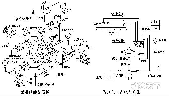 雨淋閥配置及系統(tǒng)示意圖