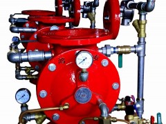 由ZSFM型雨淋閥,開式噴頭和火警電子探測器組成,當電控箱(柜)接收來自電子探測器發出的火警信號,經過聯動,向安裝在ZSFM雨淋閥的電磁閥發出指令,釋放隔膜控制腔壓力,隔膜自動開啟供水,開式噴頭開始噴水滅火。根據保護區域,保護物資的需要,你可以設計出在火警發生后要整個區域全部噴水進行控火,保護和滅火的開式噴頭管網,和火警區域局部噴水的閉式噴頭管網,也可以根據環境溫度設計成干式和濕式的控制系統,ZSFM雨淋報警閥均能為你設計服務。