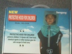 適合兒童(3—8歲)使用,為有效回避戰爭毒氣或有害環境而設計的防毒面罩。利用送風機將外部空氣通過濾毒罐送入頭罩內,形成密閉正壓,使得呼吸方便,活動無不適現象