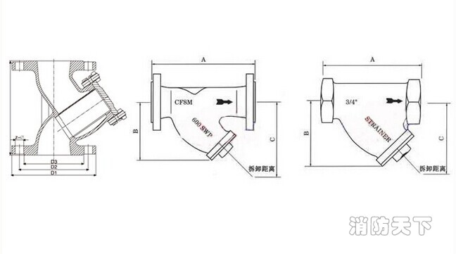 Y型過濾器按進出水口公稱通徑分,常規產品有DN50mm ~DN600mm等共14種規格;公稱壓力為1.6MPa;按結構形式分為Y型和T型兩種。