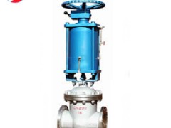 氣動帶手動閘閥具有氣動執(zhí)行機構(gòu)和手動及其保護機構(gòu)的低支架閘閥。氣動閘閥由于采用雙層氣缸結(jié)構(gòu),與單氣缸式氣動閘閥相比,提升力增大了一倍。閥門具備緩沖機構(gòu),能有效地減速輕了關(guān)閉閥門時,活塞下行沖擊而造成的閥板車密封面和閥體密封面的磨損,也能避免閘板卡死的現(xiàn)象。