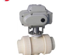 電動PP球閥閥體采用聚氯乙烯PVC聚丙烯或者PP、PPH材料,PVC可耐大部分的酸、堿、鹽由低到高濃度的腐蝕,但不耐芳香烴、酮、醚、氯化碳烴類的腐蝕。PP、PPH耐化學性非常好,對一般的酸、有機溶劑的抵抗性好。常用作PVC球閥的密封橡膠材料有三元乙丙橡膠EPDM和氟橡膠FPM等。根據其各自的特點而適用于不同的環境:EPDM可耐一般酸堿,耐化學藥品性和耐水性好,但不耐礦物油和過熱蒸汽(200℃),使用溫度在-40~120℃。而FPM耐油、耐熱、耐酸堿和耐化學藥品性能佳。常用于耐高溫、耐腐蝕的場合,使用溫度在-20℃~210℃。