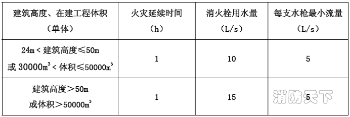 5.3.8 建筑高度大于24m 或單體體積超過(guò)30000m3 的在建工程,應(yīng)設(shè)置臨時(shí)室內(nèi)消防給水系統(tǒng)。