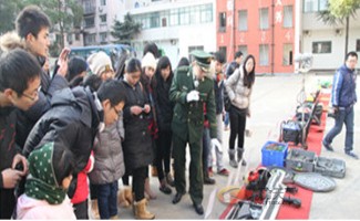 核心提示:市民走警營—消防官兵為市民現場講解、示范消防器材。