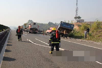 4月15日上午6時(shí)30分許,位于龍麗高速古市往松陽(yáng)方向5公里左右路段,一輛運(yùn)載19噸氯氣的大貨車(chē)在行駛中撞上護(hù)欄沖下路基。由于氯氣是劇毒物質(zhì)一旦發(fā)生泄漏后果不堪設(shè)想。松陽(yáng)消防大隊(duì)在得知情況立即出動(dòng)趕赴現(xiàn),經(jīng)過(guò)近3個(gè)多小時(shí)的緊急處置成功將險(xiǎn)情排除。