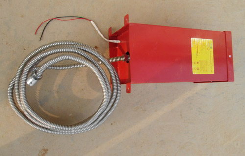 這是一種新型車用自動滅火裝置,固定安裝在汽車發(fā)動機艙外部,其探測部件和干粉噴管(噴頭)伸入機艙內(nèi),對保護對象實行全天候自動監(jiān)測,一旦發(fā)生火災,瞬間啟動,噴射滅火劑滅火。