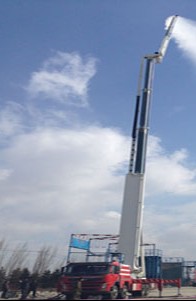 SXJP70型舉高噴射消防車是一種先進的高空消防滅火裝備,由沈陽捷通消防車有限公司生產,主要用于城鎮,工礦企業等高層建筑以及石油、化工、油罐、倉庫等高大建筑物的火災撲救。該高噴車是采用下臂總成為五節臂架構形式(其中四節伸縮臂)、上臂總成為三節臂架結構形式(其中二節伸縮臂)等八節臂架結構組成的伸縮側置折疊式臂架結構。上車全方位回轉;各運動機構均采用電氣控制液壓驅動的方式,電腦PLC控制;使該車具有操作簡便、動作靈活、安全可靠、實用性強等特點,適合我國廣大城鄉的實際需要。由于車上采用了電腦自動控制極限位置減速,消防實戰作業時展開迅速,運動平穩。遙控炮射程遠,流量大,即可打直流又可噴霧,即可射水又可噴射泡沫。該車帶有水泵、水罐、泡沫罐,可以在距火源較近的位置獨立完成救火作業,是當今世界上理想的高空消防滅火裝備。