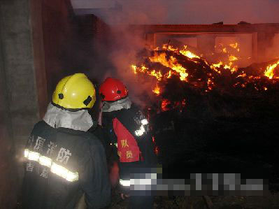 3時02分,消防官兵到達現場。經偵查得知:火災發生地點為家庭式葦簾生產加工作坊,兩側為相鄰的“連脊”房,火勢正處猛烈燃燒階段,并向周邊民房蔓延,情況萬分危急。由于火勢兇猛,現場指揮員當即立斷,將掌握情況匯報給119指揮中心,請求增援。
