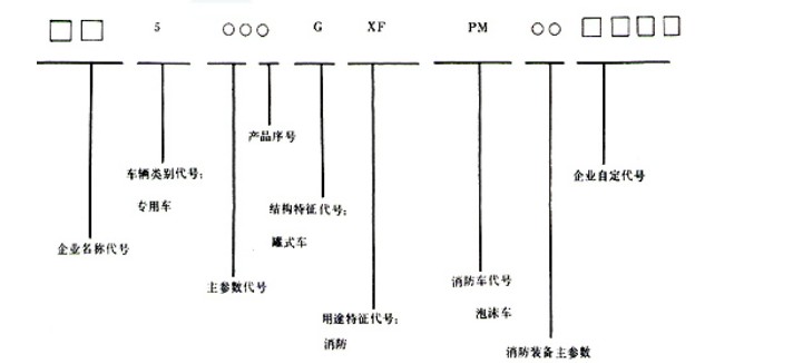 4.3 泡沫車(chē)產(chǎn)品型號(hào)的構(gòu)成如下: