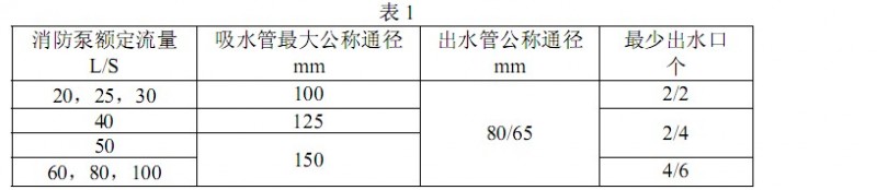 注:1)消防泵額定流量。