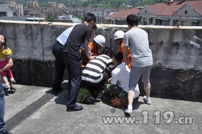 11點(diǎn)42分,余杭鎮(zhèn)中隊(duì)到達(dá)現(xiàn)場。到場后只見一名40歲左右的女子,手里抱著一名4歲左右的女孩,坐在賓館頂樓的陽臺欄桿上,距離地面大概有十多米的樣子,由于婦女的情緒非常激動,再加天氣又十分的酷熱,長此以往女子會產(chǎn)生因體力不支而失足掉落的情況。