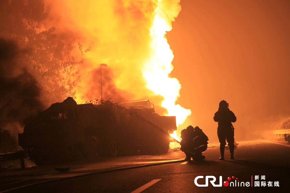 記者從湖州消防部門了解到,6月3日凌晨1點20分,一輛河北牌照的載有工業黃磷的危化品車,在經過長深(杭寧)高速南京方向距父子嶺卡點不到1.5公里處,發生追尾事故,導致車上部分黃磷泄漏。黃磷是一種固體危化品,遇空氣即自燃。當時,這輛危化品車裝了130桶共30多噸工業黃磷,被追尾后有五六十桶被撞破,水流干后黃磷暴露在空氣中發生自燃,兩輛事故車瞬間燃起大火。