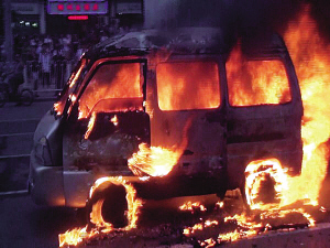 6月5日傍晚,河東區華龍道附近一輛面包車突然起火,巨大的火苗隨即將面包車包圍住,消防人員趕到后,發現面包車已經被大火吞噬,面包車的周圍都是巨大的黑煙,而且還能聞到一股刺鼻的氣味。消防人員一邊設置警戒線,禁止無關人員靠近,一邊使用水槍對著大火進行噴水。大約5分鐘后,大火被撲滅,但面包車幾乎已經被燒成空架子,所幸沒有造成人員受傷。