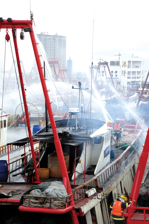 休漁期間正值高溫季節,大量漁船擁擠在港口、碼頭,由于維護維修等需要,移動頻繁,維修作業多,極易引發火災事故,安全隱患較為突出。市政府組織進行休漁期漁港消防聯合演練,對提高應急處置能力,保障休漁期漁港漁船安全具有重要意義。